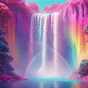 Farverig Vandfald med Regnbuer