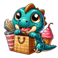 Sød dinosaur med snacks og is