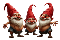 Tre glade nisser med røde huer