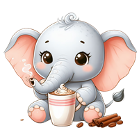Sød lille elefant med varm drik