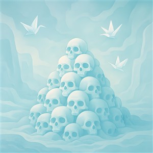Skull Pile with Paper Cranes