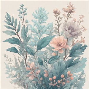 Delikate blomster og blade i pastelfarver