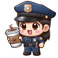 Kawaii Politibetjent med Kaffe