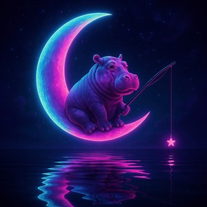 Hippopotamus on a Moonlit Adventure