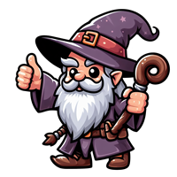 Glad troldmand med staves