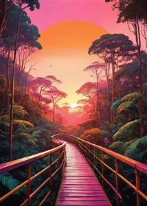 Drømmende Skovsti ved Solnedgang