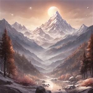 Storslået bjerglandskab ved solopgang