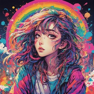 Farverig Portræt med Regnbue