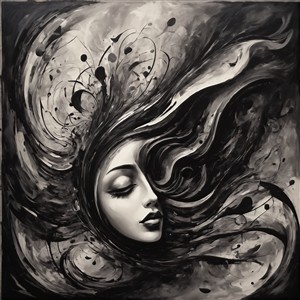 Sublime Sort-Hvid Portræt med Flowing Hår