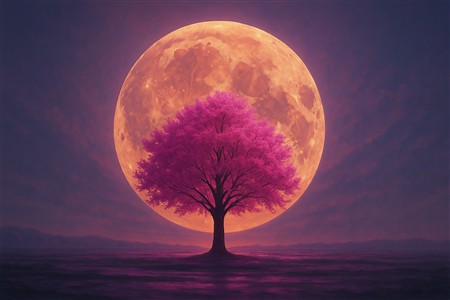 Magi i natten med et lyserødt træ