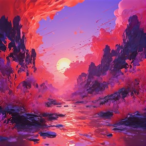 Drømmende Kystlandskab ved Solnedgang