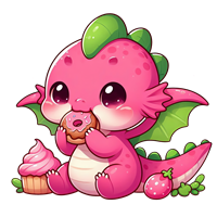 Sødt pink dragebarn med lækkerier