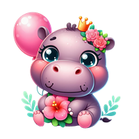 Sødt hippo med ballon og blomster