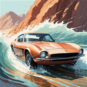 Klassisk sportsvogn i bølger