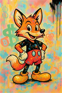 Farverig tegneseriefigur med en glad attitude