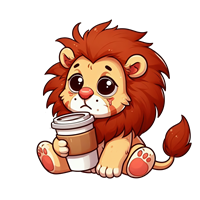 Sødt lille løveunge med kaffe