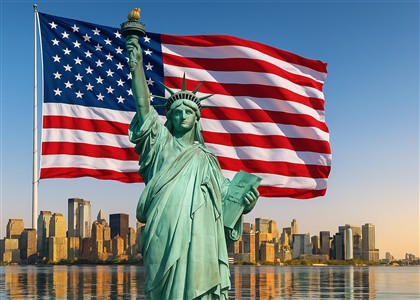 Frihedsgudinden med det amerikanske flag