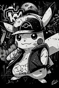 Graffiti-inspireret Pikachu i sort-hvid