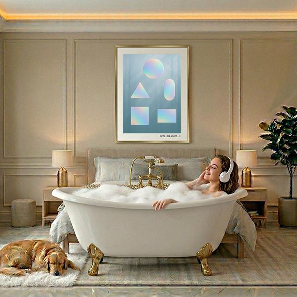 Abstrakte geometriske former med iriserende effekter