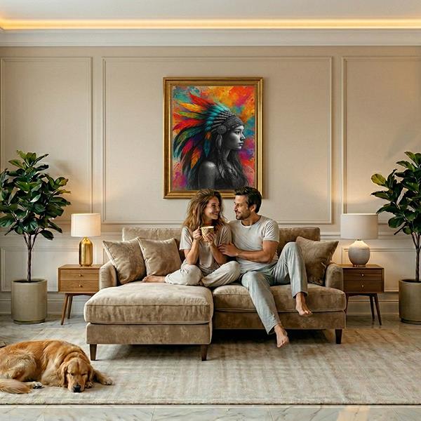 Farverig kriger med fjerhovedbeklædning