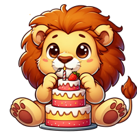 Sød løve med fødselsdagskage