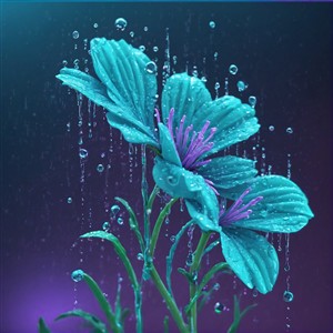 Regnfulde Blomster i Blå Nuancer
