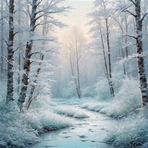 Vinterlandskab med sneklædte træer