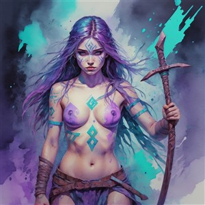 Mystisk Krigerinde med Magiske Tegn
