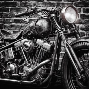 Klassisk motorcykel i sort-hvid