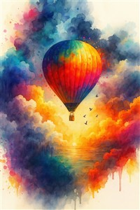Farverig varmluftballon over en drømmende horisont