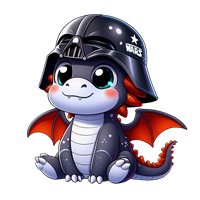 Sød drage i Darth Vader-hjelm