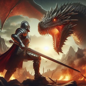 Kamp mellem ridder og drage i en episk fantasy-verden