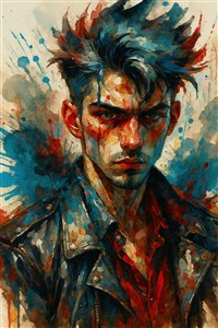 Intens Portræt af Ung Mand med Farverig Baggrund