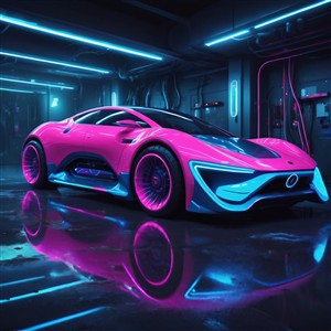 Futuristisk bil i neonfarver