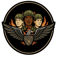 Militært emblem med soldater og ørner