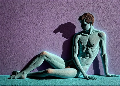 Siddende Mand i Blålige Toner