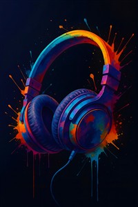 Farverige hovedtelefoner med malerisk baggrund