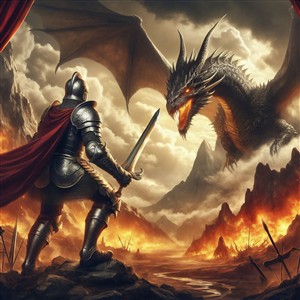 Kamp mellem ridder og drage i en episk fantasy-scene