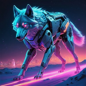 Futuristisk Robotulv i Neonlandskab