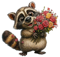 Glad vaskebjørn med blomster