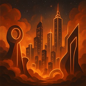 Futuristisk by i orange nuancer
