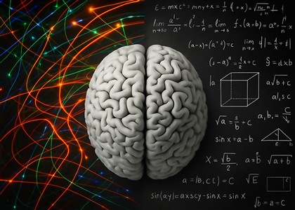 Hjerne med matematiske og videnskabelige elementer