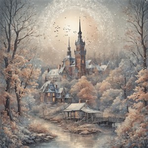 Drømmende Slot i Efterårslandskab