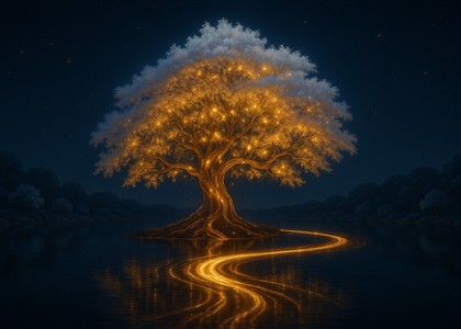 Magisk træ med lysende grene ved natten